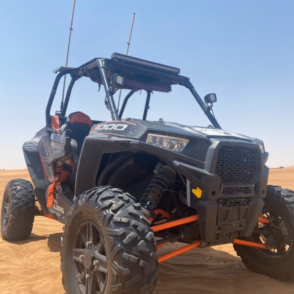 Experience the thrill of the Polaris 1000 CC buggy for a full hour with the added convenience of pick-up and drop-off services. This package includes camel rides, sand-boarding, and a falcon experience, ensuring a complete desert adventure in Dubai. Ideal for those who want both excitement and comfort.